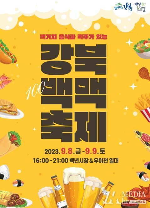 미디어아워 이다정 기자 | 서울 강북구는 MZ 세대부터 학생층, 중장년층 등 모든 세대가 즐길 수 있는 ‘2023 강북백맥축제’를 오는 9월 8일(금)~9일(토) 오후 4시부터 9시까지 백년시장 일대에서 개최한다.