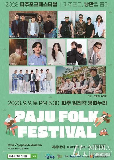 미디어아워 이다정 기자 | 파주시가 주최하고 파주도시관광공사가 주관하는 ‘2023 파주포크페스티벌’이 오는 9월 9일 임진각 평화누리 야외공연장에서 개최된다.