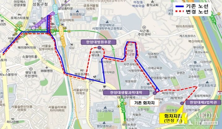 이번 노선조정으로 회차지점을 한양대생활과학대학에서 제3법학관까지 변경하고, 법학학술정보관, 올림픽체육관, 제3법학관(회차), 경영대학을 거쳐 한양대병원 후문을 경유하여 운행하게 된다.
