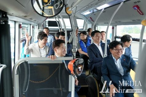 이후 오영훈 지사는 관계자 및 지역주민들과 함께 그린수소 버스에 시승하고, 그린수소 버스의 안전성과 기술력을 확인했다.
