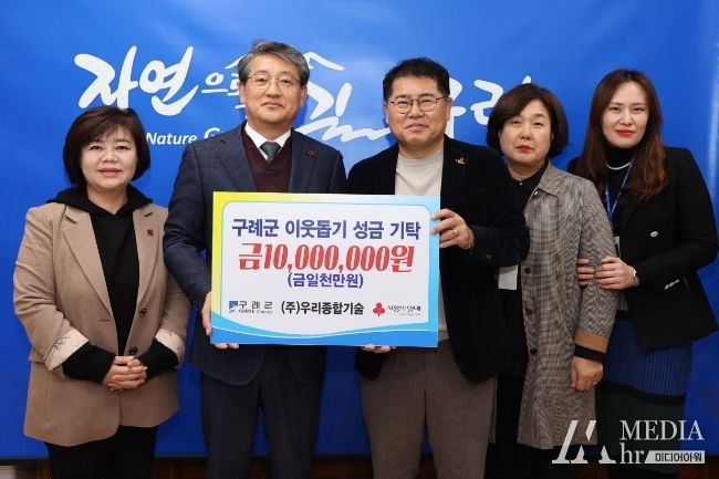 미디어아워 임다연 기자 | 전남 구례군은 12월 7일 ㈜우리종합기술에서 관내 어려운 이웃을 위해 기부금 1천만 원을 전달했다고 밝혔다.