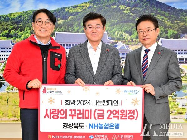 미디어아워 임다연 기자 | 경북도는 NH농협은행 경북본부와 지난 19일 도청 접견실에서 이철우 경북도지사, 전우헌 경북사회복지공동모금회장, 임도곤 NH농협은행 경북본부장이 참석한 가운데 경북 도내 취약계층을 위한 ‘사랑의 꾸러미’전달식을 가졌다.