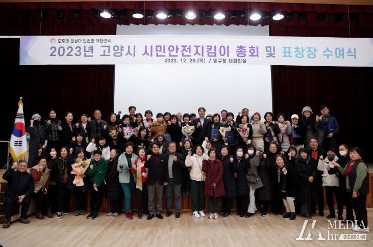 미디어아워 임다연 기자 | 지난 12월 28일 고양시 시민안전지킴이 연합대 연말 총회가 개최됐다. 이날 이동환 고양특례시장이 우수 시민안전지킴이 39명에게 표창을 수여했다.