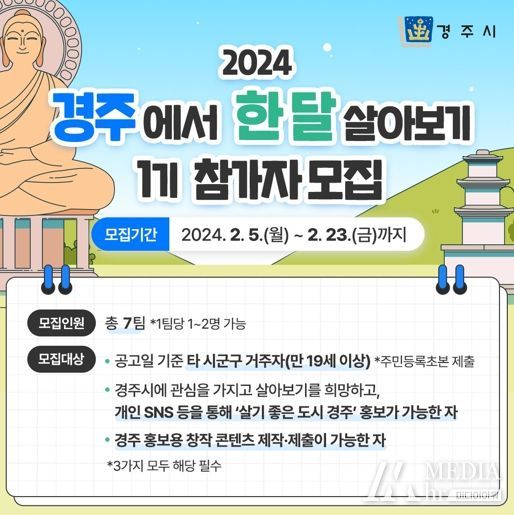 미디어아워 임다연 기자 | 경주시가 ‘경주에서 한 달 살아보기’ 2024년도 1기 참가자를 모집한다.