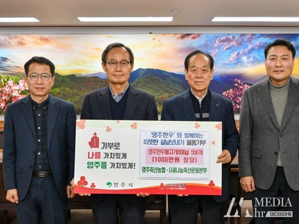 미디어아워 임다연 기자 | 영주시는 지난 6일 영주축산농협·(사)나눔축산운동본부에서 영주시청을 방문해 ‘영주한우’와 함께하는 따뜻한 설날보내기 행사로 한우불고기(600g) 556개(1천만 원 상당)를 기탁했다고 밝혔다.