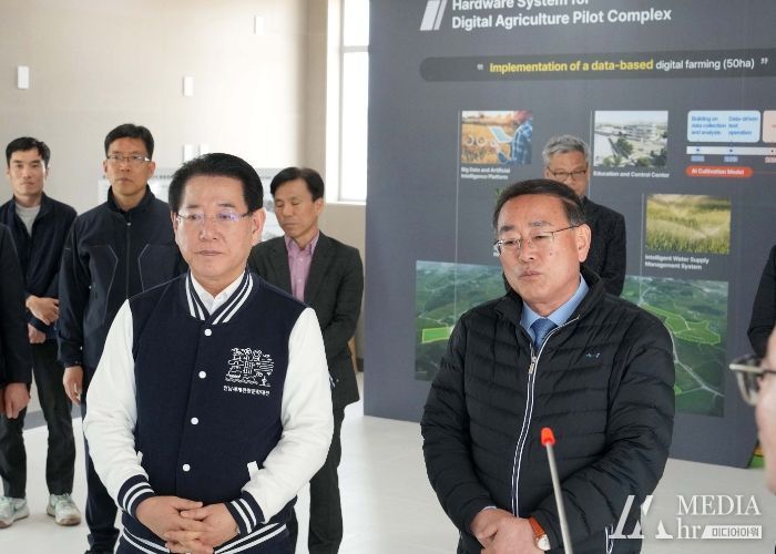미디어아워 임다연 기자 | 김영록 전라남도지사는 22일 나주에 조성 중인 한국형 노지 스마트농업 시범단지 현장을 방문해 추진상황 등을 점검하고 노지 스마트농업과 관련된 기술 시연을 참관했다.