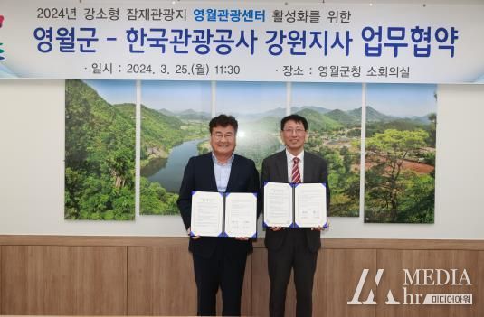 미디어아워 임다연 기자 | 영월군은 25일 한국관광공사 강원지사와 영월관광센터를 ‘강소형 잠재관광지’로 발굴·육성하기 위한 업무협약을 체결했다고 밝혔다.
