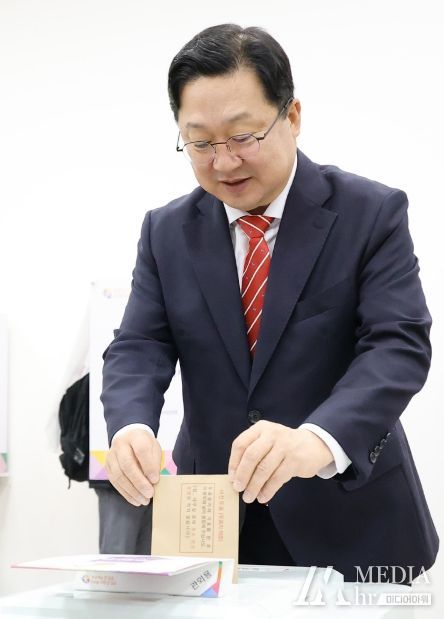미디어아워 임다연 기자 | 이장우 대전시장은 5일 오전 대전시청 전시실에 마련된 둔산1동 사전투표소에서 제22대 국회의원선거 사전투표에 참여했다.