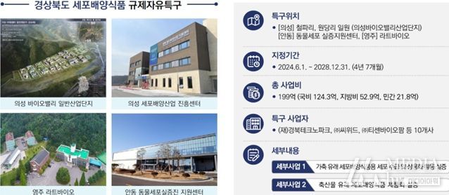 한편 경북도는 특구를 통해 ❶북부권 푸드테크 산업벨트 구축, ❷전후방 세포배양 산업생태계 조성, ❸군단위 혁신성장 거점 구축을 실현 할 계획이다.