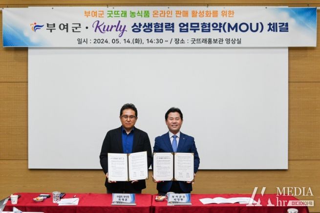 미디어아워 임다연 기자 | 부여군은 지난 14일 굿뜨래홍보관에서 국내 새벽배송시장을 이끌어낸 ‘(주)컬리’와 '부여군 굿뜨래 농식품 온라인 유통 확대를 위한 업무협약'을 체결했다.