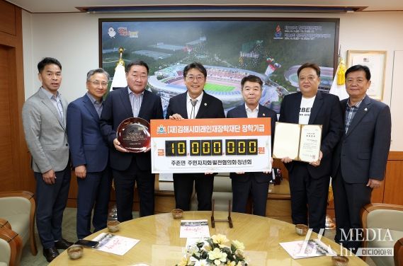 미디어아워 임다연 기자 | 김해시미래인재장학재단은 28일 주촌면 주민자치회·발전협의회· 청년회 3개의 자생단체에서 장학기금 1,000만원을 기탁했다고 밝혔다.