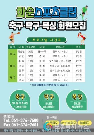 화순군은 지난해 6월 대한체육회가 주관한 종합형 공공 스포츠클럽 공모에 선정, 올해 4월부터 본격적인 운영을 시작했다.