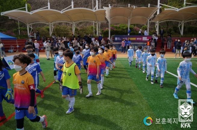23일 서울 은평구립축구장에서 2022 i리그 개막식이 열렸다. 유·청소년들이 넓은 축구장에서 공놀이를 즐기는 축구 축제라는 i리그의 소개에 맞게 개막식 현장은 축구를 사랑하는 아이들의 놀이터였다.
