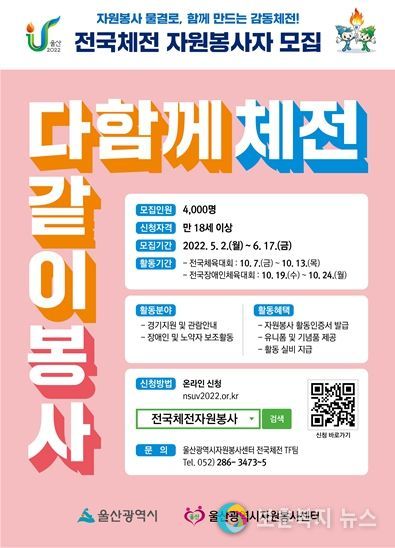 보훈복지뉴스 유서진 기자 | 울산시가 오는 10월 울산에서 열리는 제103회 전국체육대회와 제42회 전국장애인체육대회의 자원봉사자를 모집한다.
