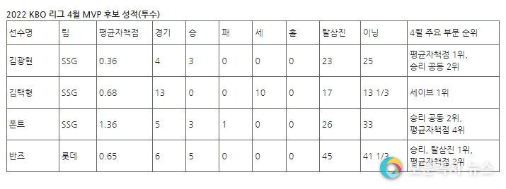 기자단 투표와 팬 투표를 합산한 2022 신한은행 SOL KBO 리그 4월 MVP 최종 결과는 오는 5월 9일(월) 발표될 예정이다.