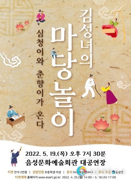 보훈복지뉴스 유서진 기자 | 김성녀의 마당놀이 '심청이와 춘향이가 온다'가 오는 5월 19일(목) 오후 7시 30분 충북 음성군 음성문화예술회관 대공연장에 펼친다.