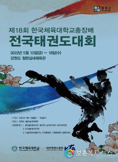 보훈복지뉴스 유서진 기자 | 제18회 한국체육대학교총장배 전국태권도대회가 5월13일부터 5월18일까지 8일간 철원실내체육관에서 열린다.