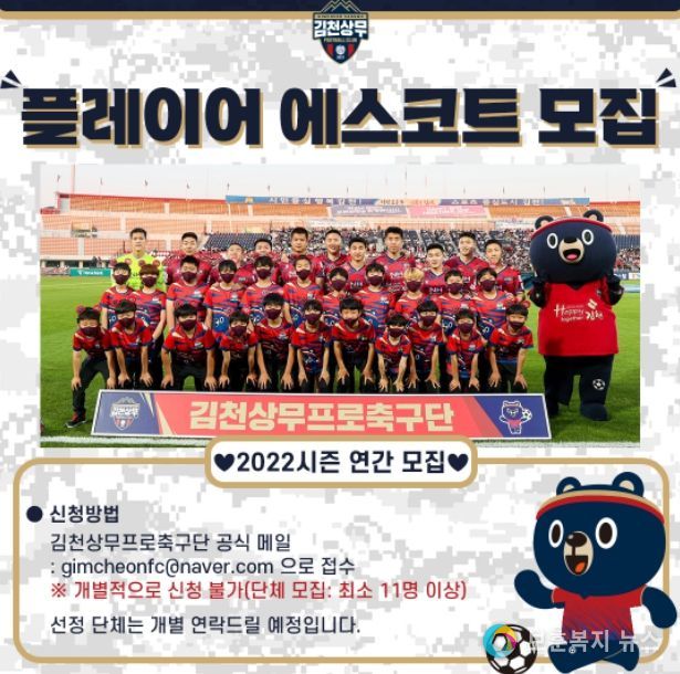 보훈복지뉴스 유서진 기자 | 김천상무가 홈경기에서 선수단과 함께 입장할 플레이어 에스코트를 모집한다.