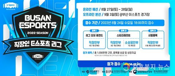 보훈복지뉴스 유서진 기자 | 부산시와 (재)부산정보산업진흥원(원장 정문섭)은 이스포츠 문화 활성화를 위해 오는 9월 3일 부산이스포츠경기장에서 ‘제5회 부산광역시장배 전국 직장인 이스포츠 대회’를 개최한다고 밝혔다.