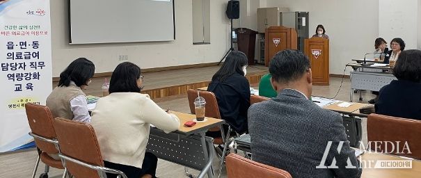 미디어아워 최태문 기자 | 영천시는 10일 영천지역자활센터 1층 강당에서 2023년 읍면동 의료급여 담당자 교육을 실시했다.