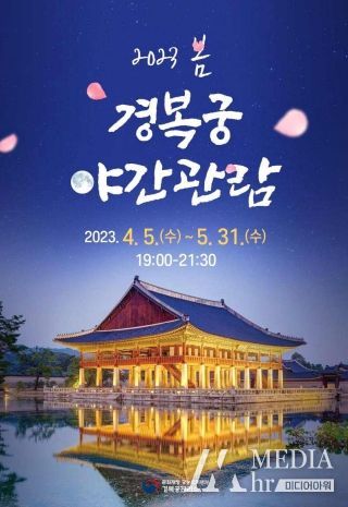 미디어아워 최태문 기자 | 문화재청 궁능유적본부 경복궁관리소(소장 원성규)는 4월 5일부터 5월 31일까지 2023년 봄 경복궁 야간 관람을 운영하고, 3월 29일 오전 10시부터 온라인 예매를 시작한다.