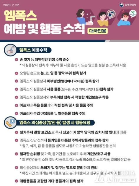 엠폭스는 주로 제한적인 감염경로(피부·성접촉)를 통해 전파가 이루어지는 감염병으로 전파위험도가 낮고 관리가 가능한 질환이므로 과도한 불안보다는 감염예방수칙 준수를 당부했다.