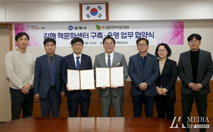 미디어아워 최태문 기자 | 김해시와 한국출판문화산업진흥원은 17일 오후 3시 김해시청에서 김해책문화센터 구축과 운영을 위한 업무 협약을 체결했다.