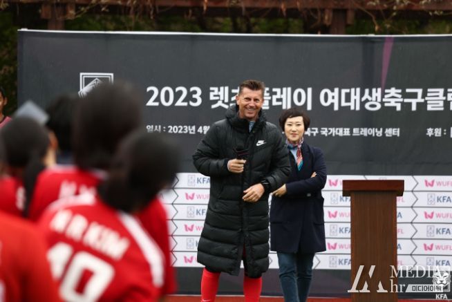 이어 참가자들을 위한 깜짝 손님인 콜린 벨 여자축구 국가대표팀 감독이 등장했다. 콜린 벨 감독은 유창한 한국어로 “오늘 날씨가 좋지 않아 짧고 굵게 말하겠다. 좋은 시간 보냈으면 좋겠다. 재미, 열심히, 고강도, 적극적”이라는 네 단어를 강조하며 재치 있는 축사를 마쳤다.