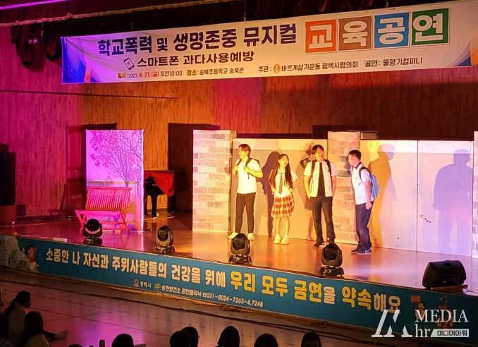 먼저 이날 행사에는 바르게살기운동 평택시협의회 주관으로 학교폭력·생명존중·흡연예방 등을 소재로 한 뮤지컬 공연이 진행됐다. 상황극을 통해 학교폭력 피해의 심각성과 그에 따른 극단적인 선택에 미치는 영향, 대처 및 해결 방법에 대해 공감과 이해도를 높였으며 흡연과 같은 유해환경으로부터 보호 선도하는 내용도 다뤄졌다.