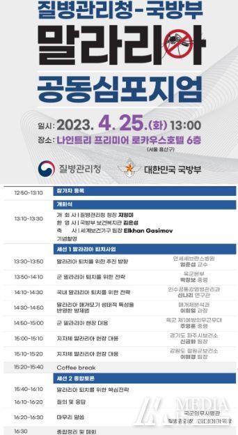 미디어아워 최태문 기자 | 질병관리청은 ‘세계 말라리아의 날(4월 25일)’을 맞아, 서울 로카우스 호텔에서 '질병관리청-국방부 말라리아 공동심포지엄'을 개최하고, 2030년까지 말라리아 재퇴치를 목표로 협력을 강화해 나아갈 것을 약속했다. 질병관리청이 ‘세계 말라리아의 날’ 관련 공식 행사를 개최한 것은 이번이 처음이다.