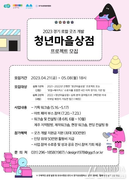 미디어아워 최태문 기자 | 경기문화재단(대표이사 유인택) 경기상상캠퍼스가 4월 21일부터 5월 8일까지 2023 경기 로컬 굿즈 개발 '청년마을상점' 프로젝트의 참여자를 모집한다.