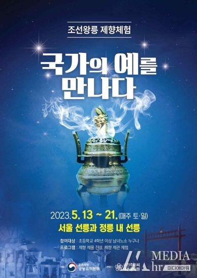미디어아워 최태문 기자 | 문화재청 궁능유적본부(본부장 정성조)와 (사)전주이씨대동종약원(이사장 이귀남)은 서울 선릉과 정릉(서울 강남구 소재) 내 선릉(성종과 정현왕후의 능)에서 5월 13일부터 21일까지 매주 토·일요일마다'조선왕릉 제향체험-국가의 예를 만나다'행사를 개최한다.