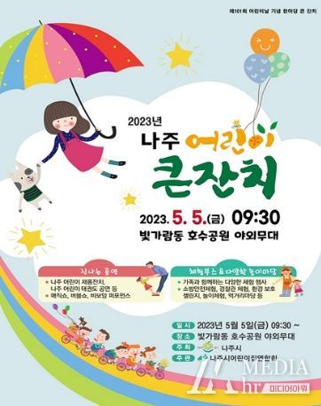 전라남도 나주시는 5일 오전 9시 30분부터 오후 1시까지 빛가람호수공원 야외 무대 일원에서 ‘2023년 나주 어린이 큰잔치 행사’를 개최한다고 1일 밝혔다.