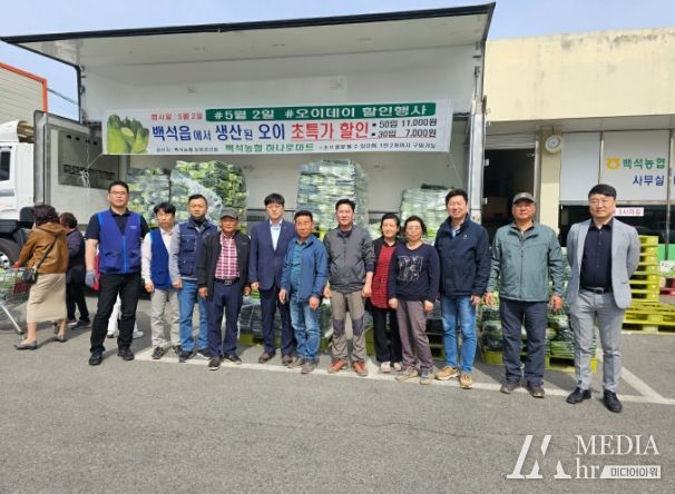 미디어아워 최태문 기자 | 양주시 백석농협(조합장 이용재)에서 5월2일을 맞아 백석농협 오이공선회(회장 김동춘)와 합동으로 백석오이의 우수성과 홍보를 위해 오이데이 할인행사와 오이재배농가에 대한 30여명의 농협임직원들의 농촌일손돕기를 병행 실시했다.