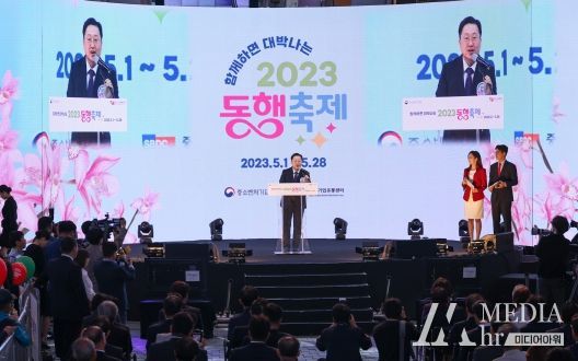 미디어아워 최태문 기자 | 5월부터 진행 중인 국내 최대 규모의 중소기업·소상공인 소비 촉진 행사인 '함께하면 대박나는 2023 동행축제' 개막행사가 대전시 중구 은행동 으능정이 스카이로드에서 개최됐다.