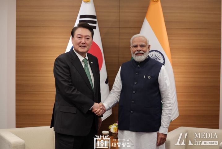 미디어아워 최태문 기자 | 윤석열 대통령은 G7 정상회의 참석차 일본 히로시마를 방문한 계기에 오늘(5. 20, 토) 오전 10시 30분 나렌드라 모디(Narendra Modi) 인도 총리와 한-인도 정상회담을 개최했다.