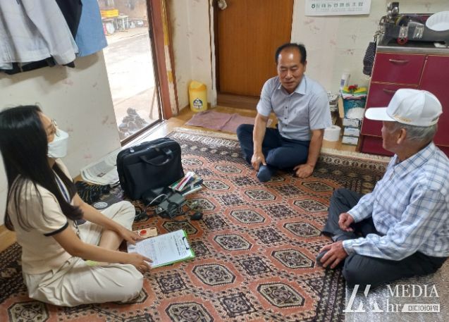 미디어아워 기자 | 당진시 정미면은 지난 13일, 본격적인 무더위를 앞두고 독거노인들의 생활실태와 건강 상태를 확인하기 위해, 면장과 동행하여 홀로 생활하는 어르신 4가구를 직접 찾아가는 맞춤형 복지 서비스를 제공했다.
