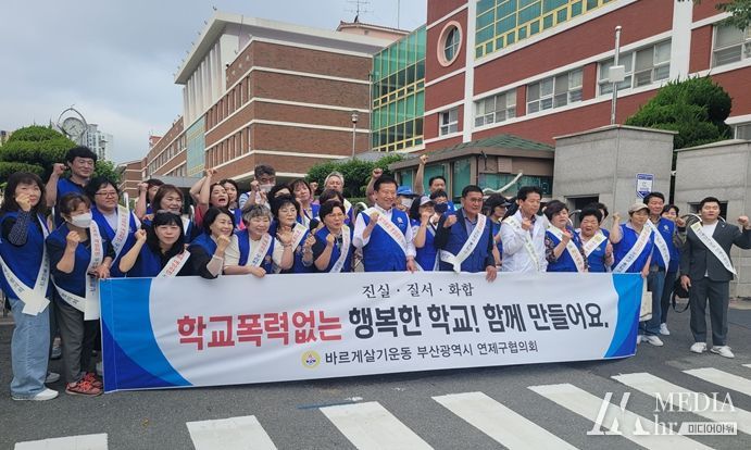 미디어아워 기자 | 바르게살기운동 연제구협의회는 6월 13일 연산초등학교 정문 앞에서 학교폭력 예방 등을 위한 ‘4대악 추방 캠페인’을 실시했다.