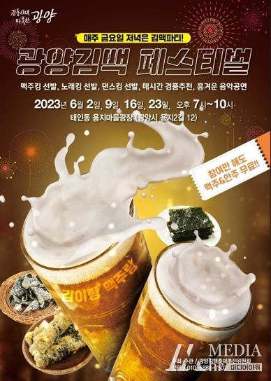 김대성 광양김맥축제추진위원장은 “올해 처음으로 추진된 김맥페스티벌은 전 세계인의 입맛을 사로잡고 있는 김과 맥주와 축제를 결합해 최초 김 시식지의 역사성을 강화하고 광양의 매력을 알리는 관광콘텐츠를 발굴하기 위해 기획됐다”면서 “올 6월 시범 운영을 통해 미비한 점을 개선하고 추후 지속가능한 축제로 발전시켜 최초 김 시식지의 가치와 명맥을 이어나갈 계획이다”고 말했다.