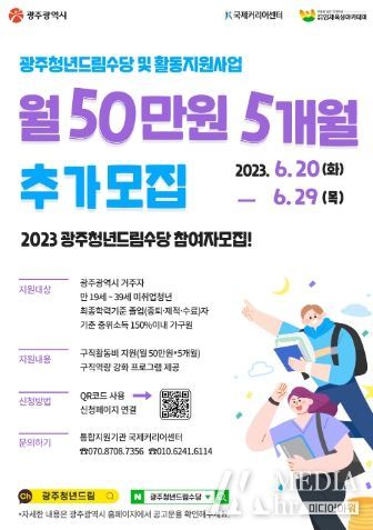 미디어아워 기자 | 광주광역시는 ‘2023 광주청년드림수당 및 활동지원사업’ 2기 참여자를 추가 모집한다.