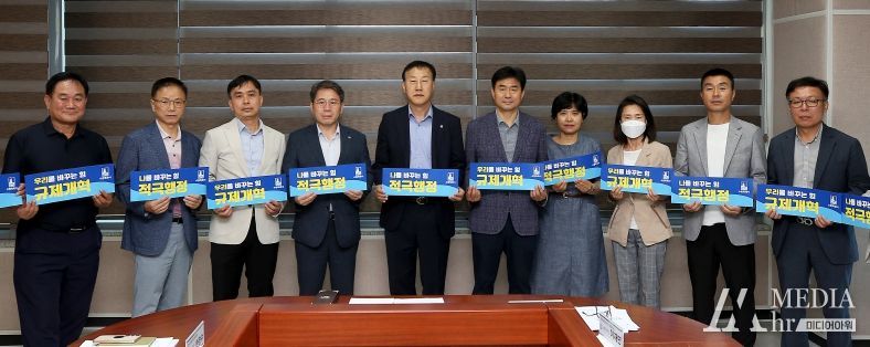 미디어아워 기자 | 19일 오전 더함파크에서 열린 ‘수원도시공사 적극행정 규제개혁 실천 다짐 선언식’에서 공사 임직원이 ‘나를 바꾸는 힘 적극행정 우리를 바꾸는 힘 규제개혁’이란 글귀가 적힌 피켓을 들고 실천 다짐을 하고 있다.
