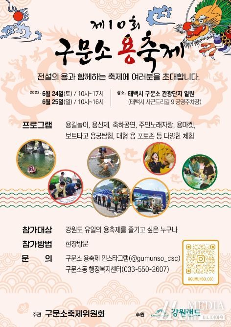장호건 구문소축제위원장은 “이번 구문소 용 축제는 온 가족이 함께 즐길 수 있는 축제 프로그램들로 알차게 마련했다. 많은 관광객들이 방문하셔서 용 축제 즐기고 좋은 추억을 만들기를 바란다”고 전했다.