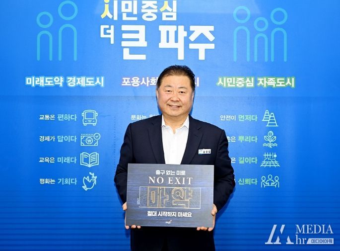 미디어아워 기자 | 김경일 파주시장이 21일, 마약 예방을 위한 '노 엑시트(NO EXIT)' 캠페인에 동참했다.