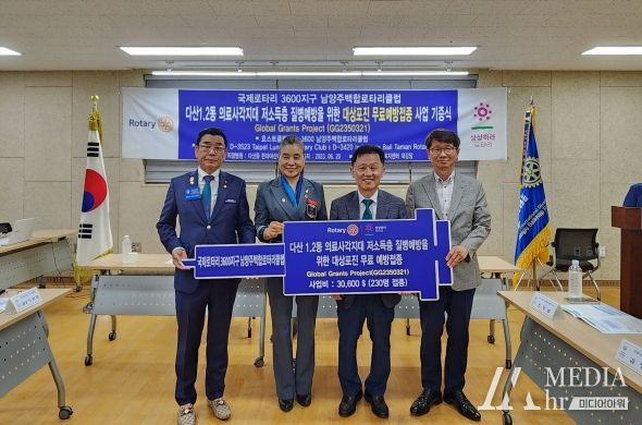 미디어아워 기자 | 남양주백합로터리클럽은 지난 20일 다산행정복지센터에서 다산동 지역 내 의료사각지대 어르신의 질병 예방을 위한 대상포진 무료 예방접종 기증식을 실시했다.