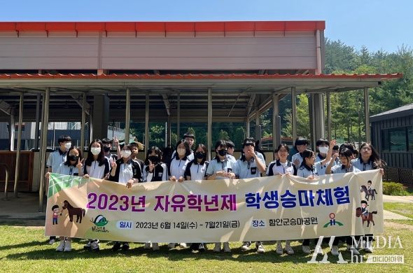 미디어아워 기자 | 함안군승마공원은 함안군만의 지역특색을 반영한 승마시설 체험을 통해 저변확대 유도 및 승마인구 확보를 위한 자유학년제 승마체험을 실시하고 있다.