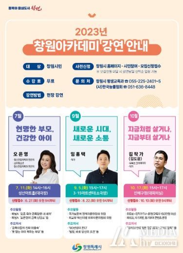 미디어아워 기자 | 창원특례시는 오는 7월부터 ‘2023년 창원아카데미’를 개최한다고 21일 밝혔다.
