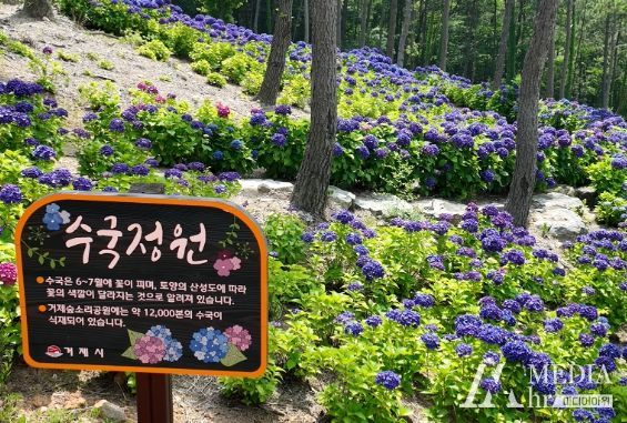 미디어아워 기자 | 사계절마다 다른 즐거움을 선사하는 거제 숲소리공원은 지금 수국이 절정이다.