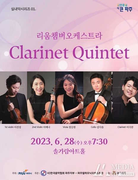 미디어아워 기자 | 파주시가 주최하고 (사)한국음악협회 파주지부가 주관하는 시민음악회인 ‘실내악시리즈’가 6월 28일부터 10월 11일까지 매월 솔가람아트홀에서 개최된다.