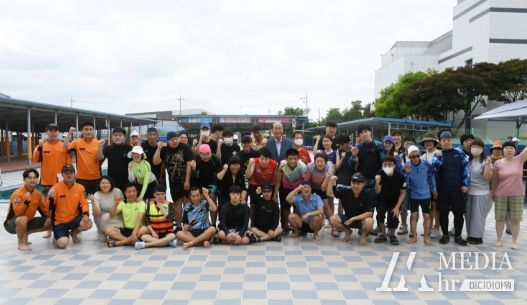 미디어아워 기자 | 동두천시 시설사업소(소장 오영준)에서는 6월 22일 목요일에 시민회관 실외수영장에서 관내 장애인들을 초청해 수상안전교육(생존수영)을 실시했다.