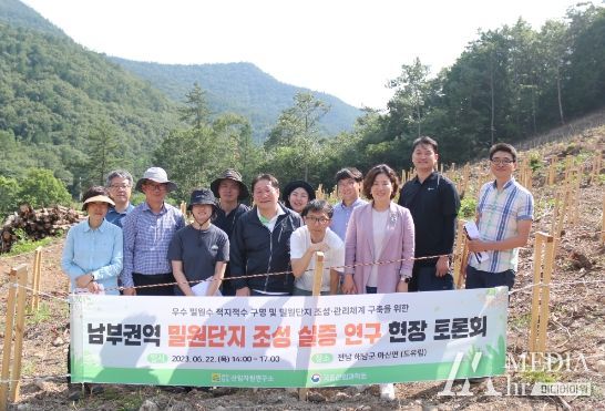 미디어아워 기자 | 전라남도산림자원연구소는 ‘남부권역 밀원단지 조성 실증연구 현장 토론회’를 지난 22일 해남 마산면 밀원자원 연구 시험지에서 열어 생산성 증대와 소득 창출을 위한 밀원단지 효율적 배치·관리 방안을 논의했다.